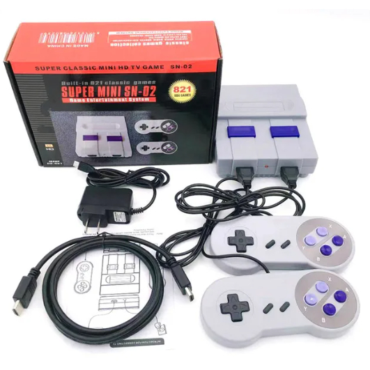 Console Retro Anos 80 E 90 Vídeo Game Super Mini Sn-02 821 Jogos 8bits Hdmi PROMOÇÃO