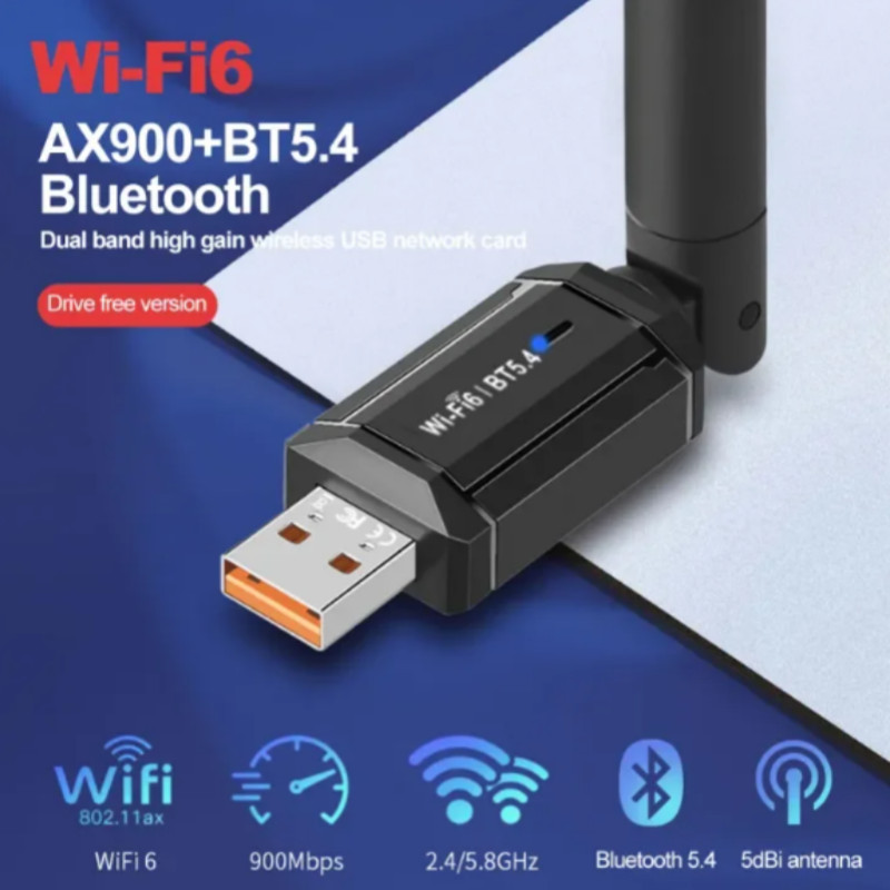 USB WiFi 6 Bluetooth 900 Adaptador 5.4 Mbps 2 Em 1 Dongle Ttourist Banda 2.4G E 5GHz Rede Sem Fio Wlan Receptor Driver G