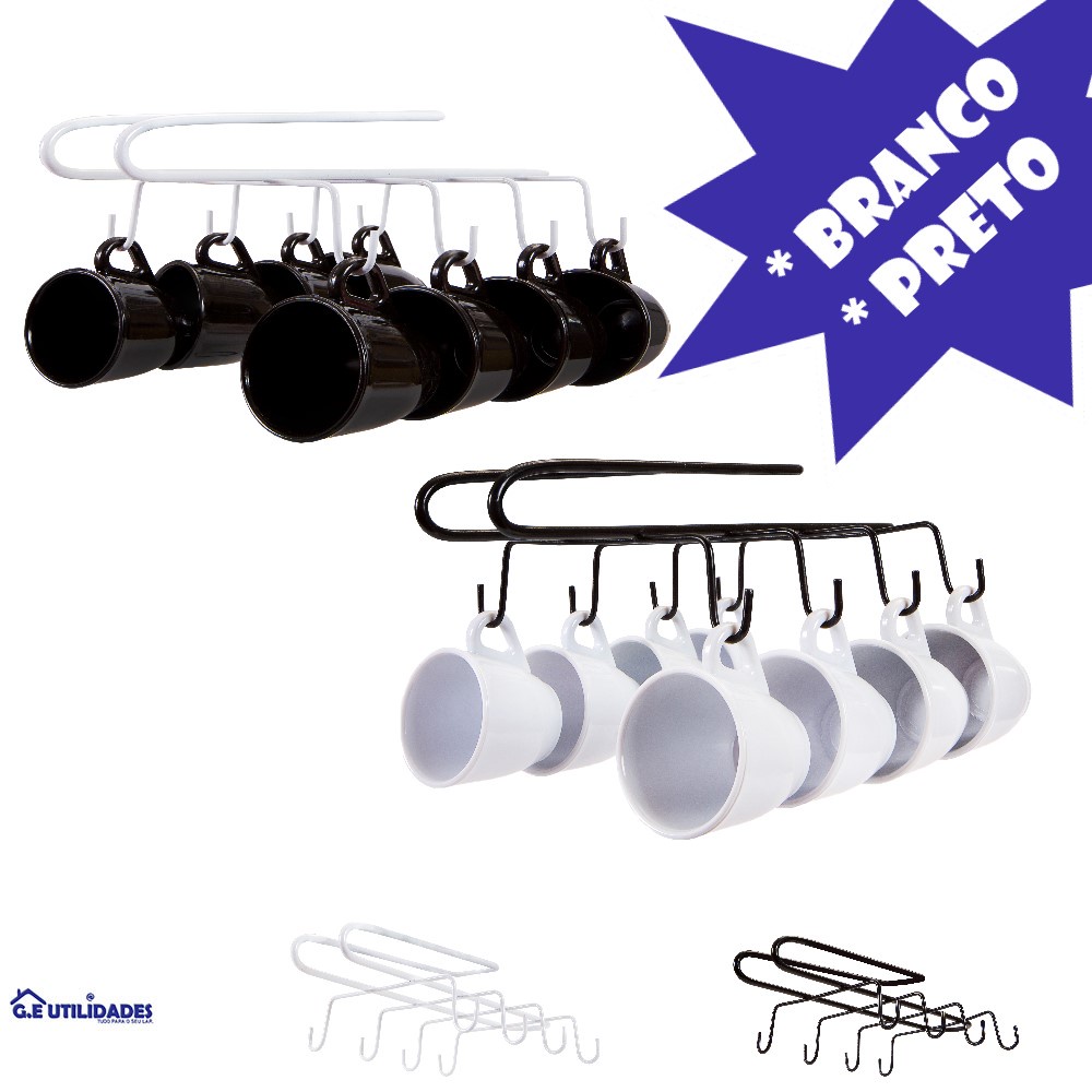 Porta Xícaras Suspenso Suporte Organizador Armário Cozinha 100% Aço