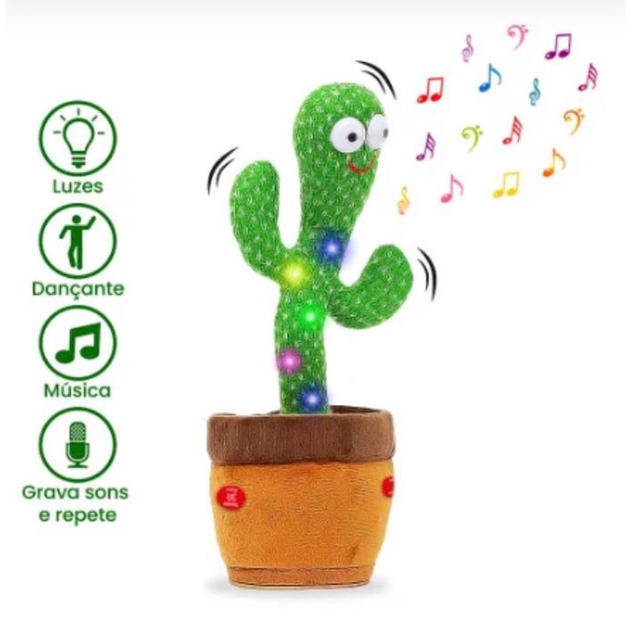 Cacto Dançante E Falante Toca Música Repete A Fala Brinquedo Recarregavel USB