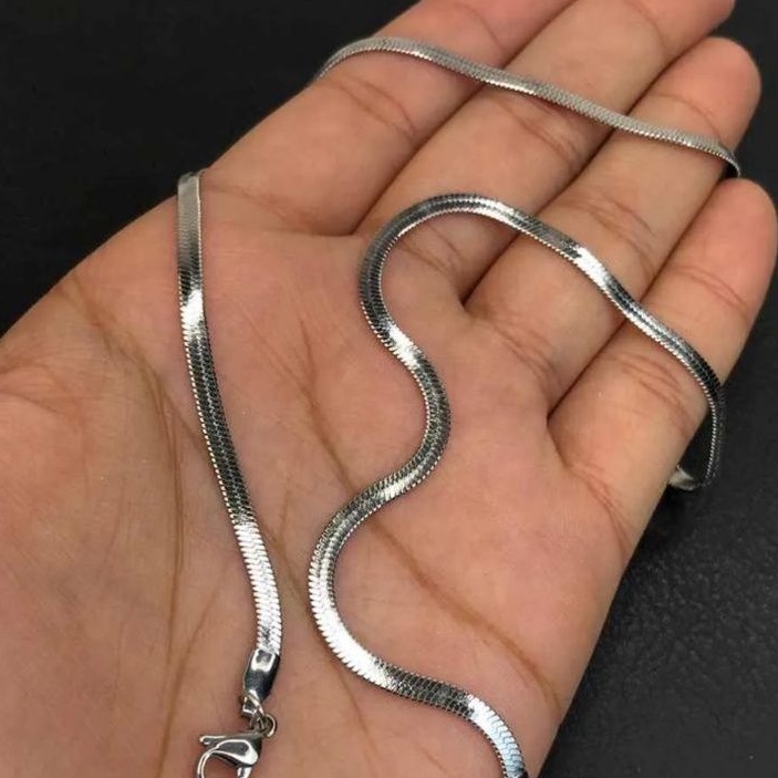 Corrente masculina Feminina lisa prata aço inox 3mm - 45cm
