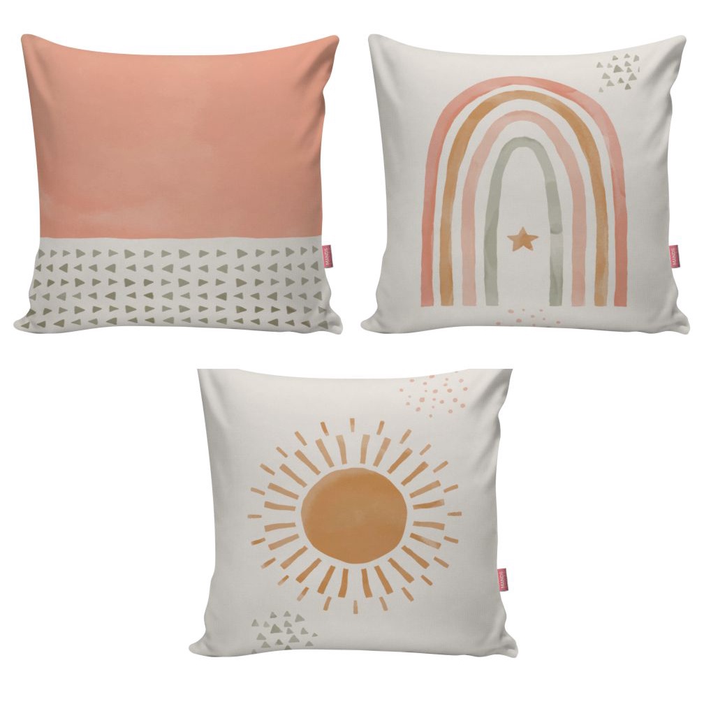 Kit 3 Capas de Almofadas Decoracao Arco Iris Boho