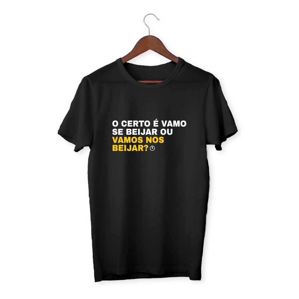 Camiseta Preta O certo é vamo se beijar ou vamos nos beijar? Frase divertida