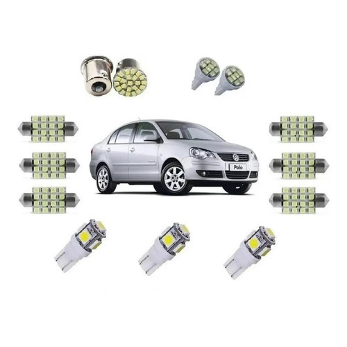 Kit Lampada Leds Polo 2007/2014 Teto Placa Ré Farolete Pingo