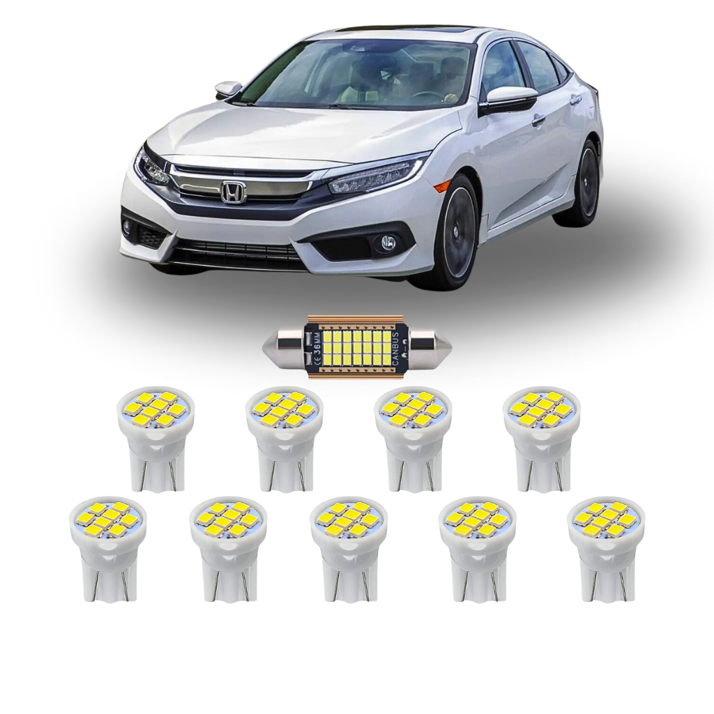 KIT Lâmpada Led Honda Civic 2017 a 2019 ( Porta Malas Placa Farolete Ré Teto ) New Civic G9 G10 T10 torpedo pingo