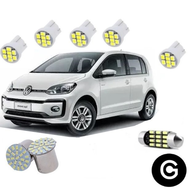 Kit Lâmpada Led Vw Up Tsi Farolete Pingo Teto Placa Ré Farolete Branco