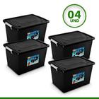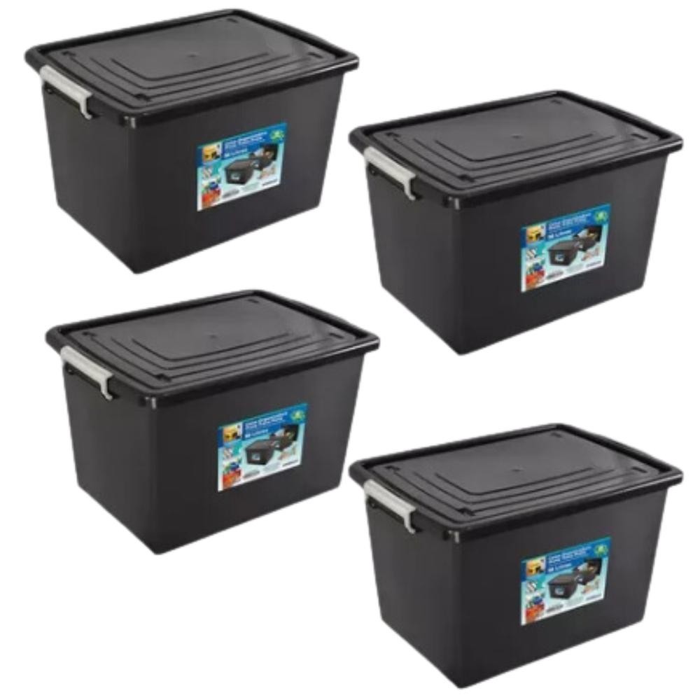 Kit 4 Caixas Organizadoras C/ Tampa e Trava 56 Litros Preta