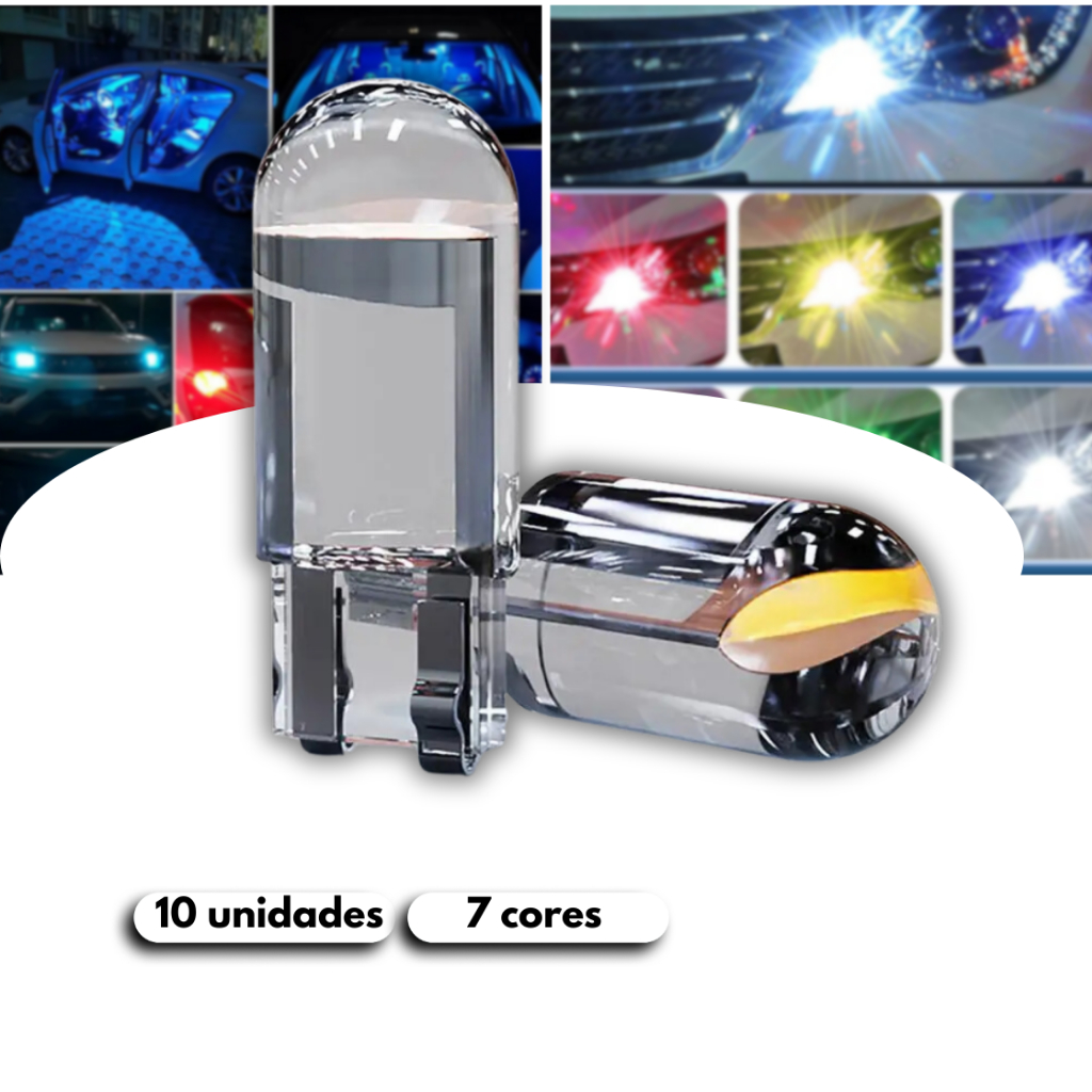 kit 10 Lâmpada Led Pingo T10 Carro Diversas Cores 9mm 23mm 0,36W-COB Corrente 0,03A - DC12V