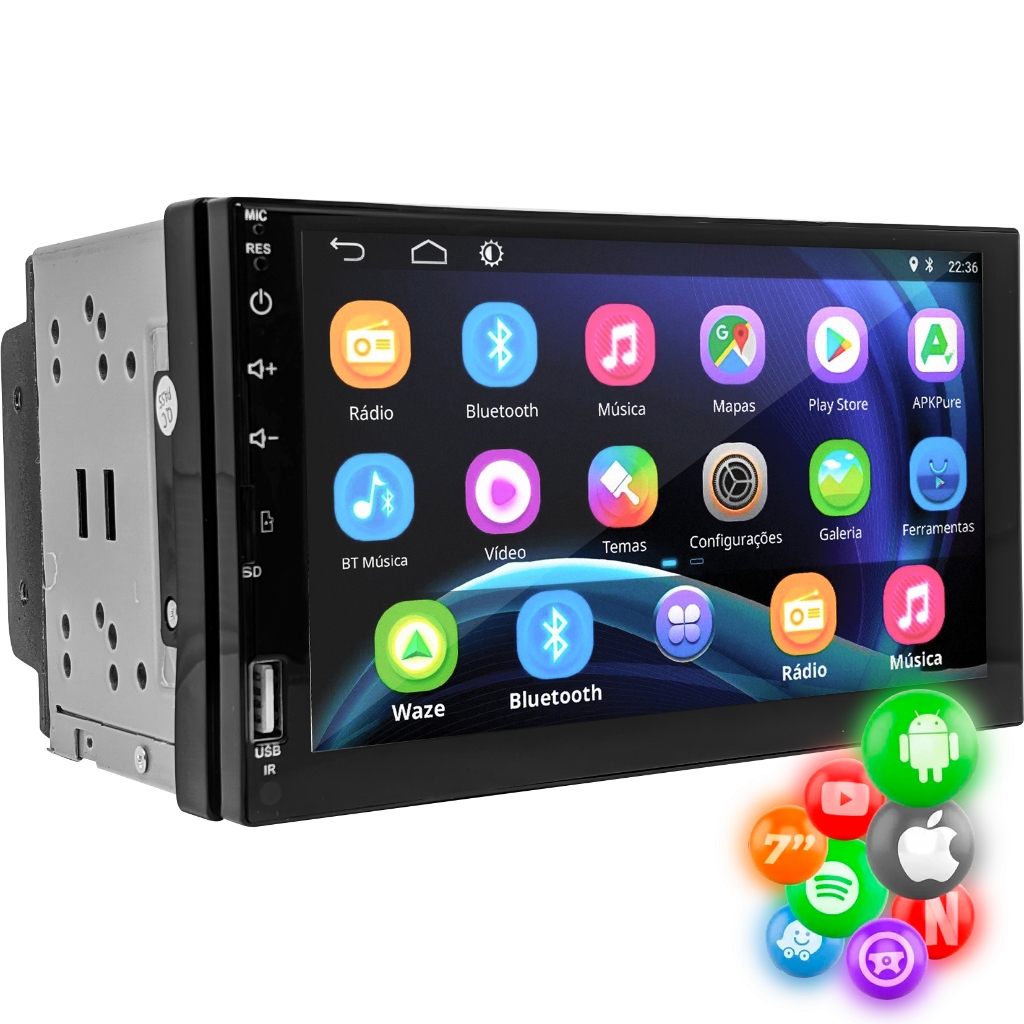 Central Multimídia Universal 7" Android Slim Com Câmera de Ré GPS e WI-FI