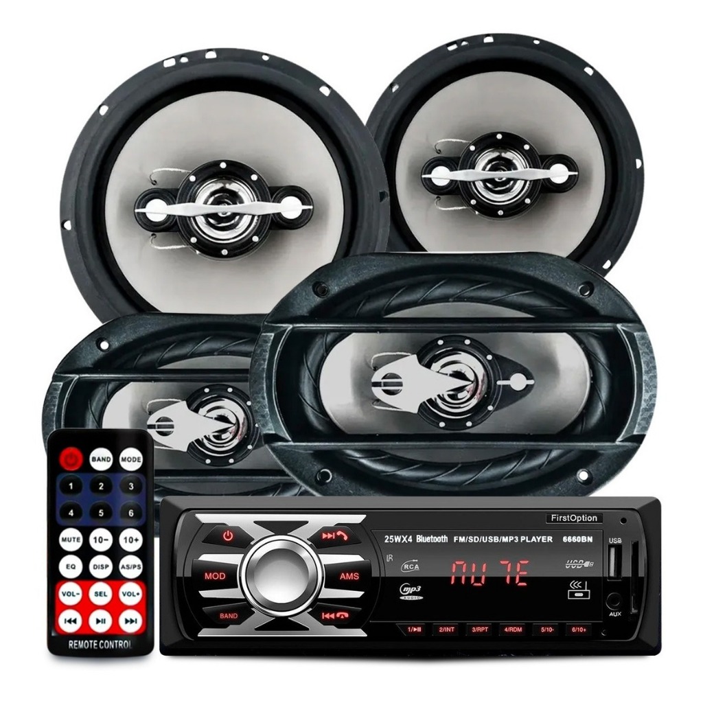 Kit Rádio de Carro Bluetooth Usb + 1 par de Alto-falante 6x9 e 1 par de 6" Toca Som Automotivo