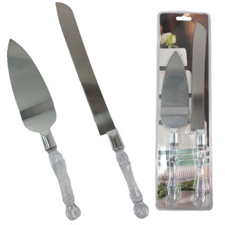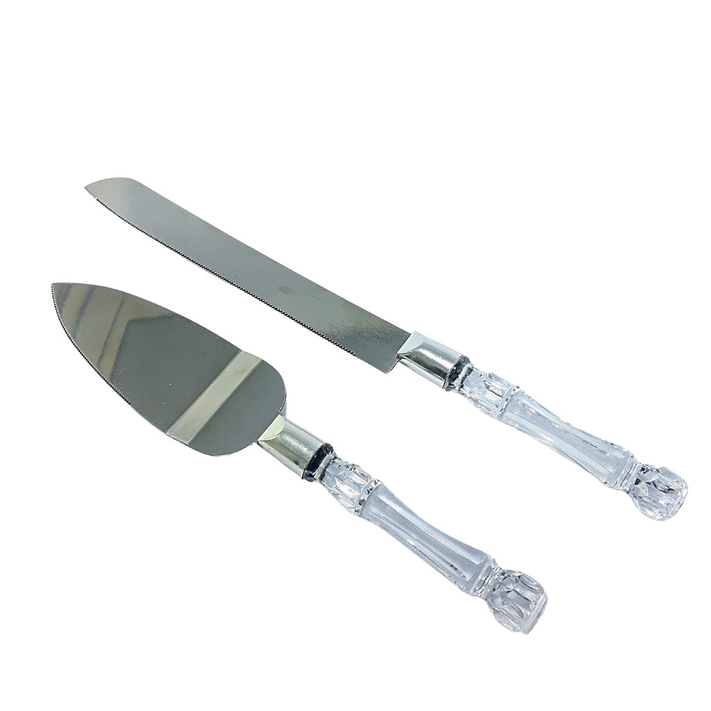 Kit Faca e Espátula para Corte de Bolo com Cabo em Plástico Estilo Cristal - Utensílio de Cozinha, Festas