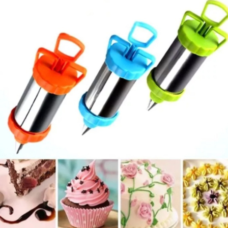 Kit Decorador Tipo Seringa P/ Bolo e Cupcake Com 4 Bicos Inox para Confeitar + Espátula de Decoração