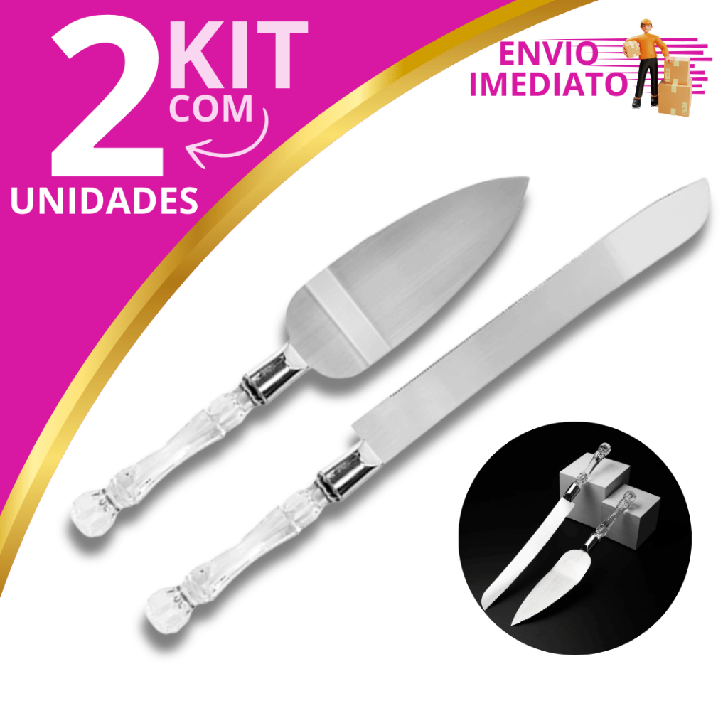 Kit Conjunto Talheres Para Bolo Espátula E Faca Cristal Inox