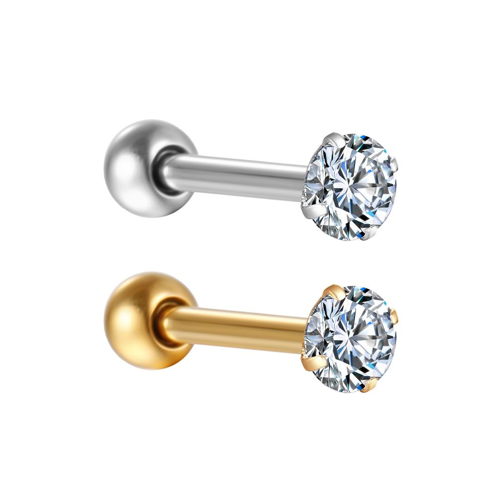 Piercing Labret Zircônia Redonda Aço Cirúrgico Rosca Interna | Helix, Tragus, Conch, Nariz, Boca-Medusa e Outros