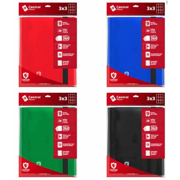 Fichário Pasta para cards Pokémon Central 3x3 para 360 cartas Pokémon Magic Todas Cores álbum