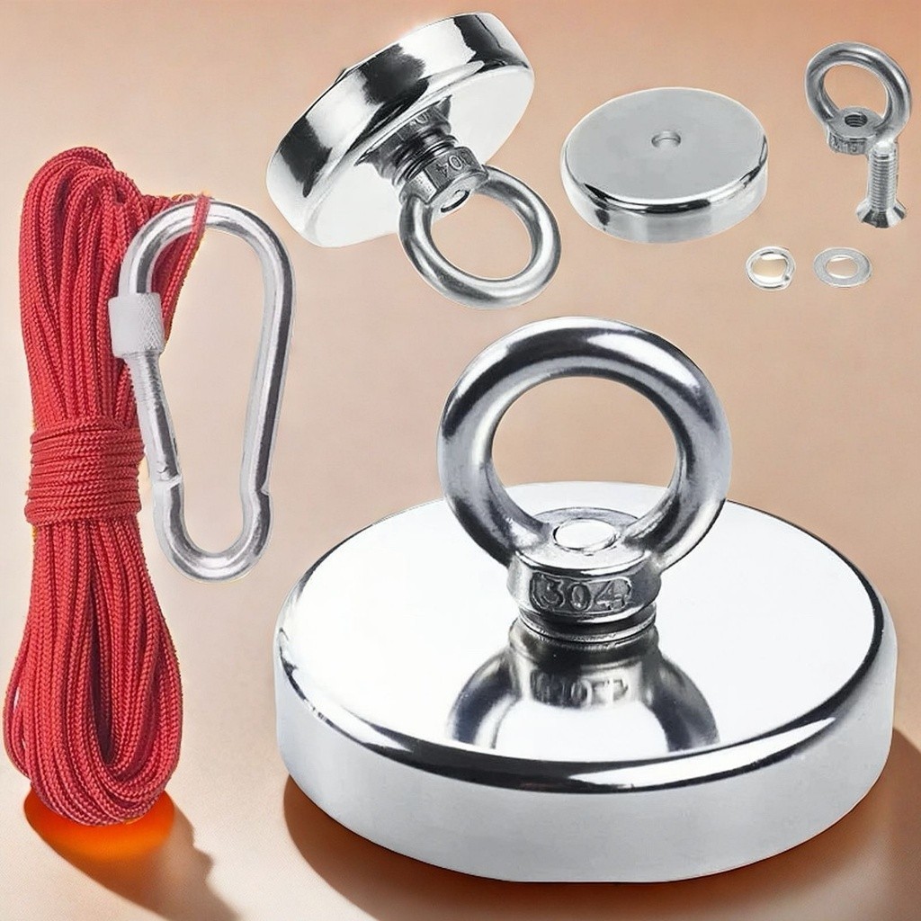 Imã De Neodímio Para Pesca Esportiva Magnética De 200Kg Tração + Corda 20 metros Muito Resistente