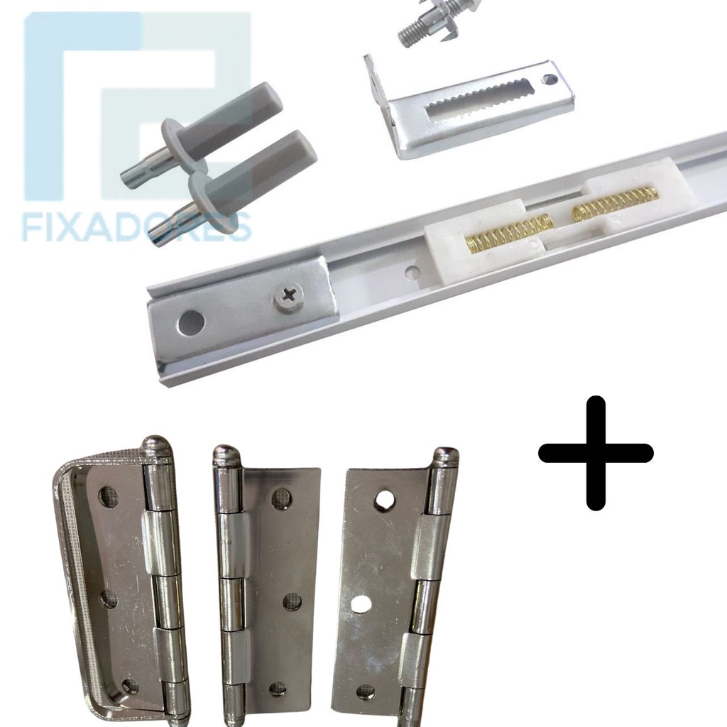 Kit Trilho Completo Especial Para Porta Camarão Branco + Dobradiça Para Porta Camarão De Madeira Cromada