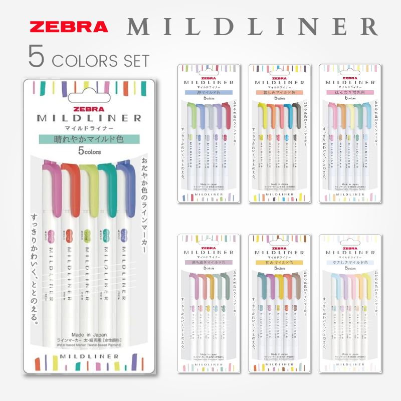Zebra MILDLINER Caneta Marcadora Dupla Face De Ponta Conjunto De 5 Cores , Papelaria De Diário Japonês