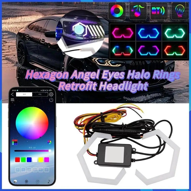 2 Pcs 9 V-30 LED Carro Hexágono Angel Eyes Halo Rings RGB Bluetooth APP Controle Universal Luz De Circulação Diurna DRL