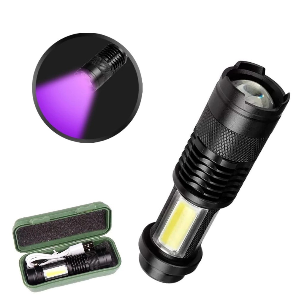 Lanterna Tática Led Cob Luz Negra Ultravioleta 4 Modos Recarregável