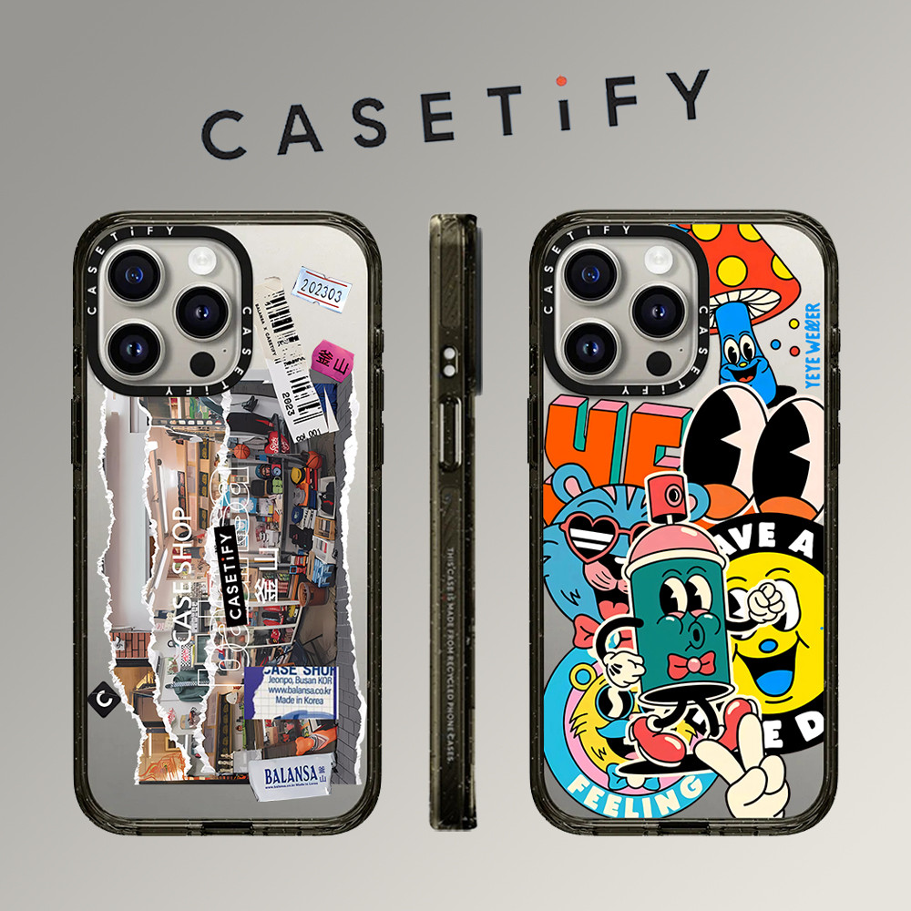CASETIFY Busan Ilustração Adesivos Capa De Telefone Acrílica Transparente À Prova De Choque Para iPhone 16 Pro Max 15 Plus 14 ProMax 13 12Pro 12 Protetora Rígida Com Borda Macia