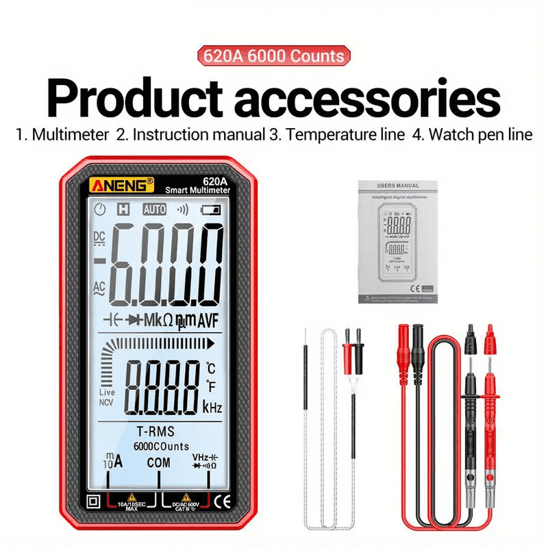 ANENG 621A Tela Sensível Ao Toque Multímetro Digital Inteligente 9999 Conta Gama Automática Voltímetro Portátil NCV Universal Ammetro
