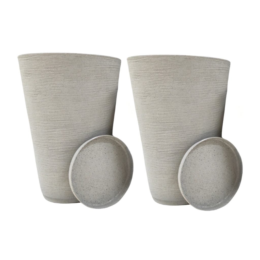 Kit 2 Vaso para Planta Em Polietileno Redondo Bojo Escovado (20X25) Com Prato Coletor