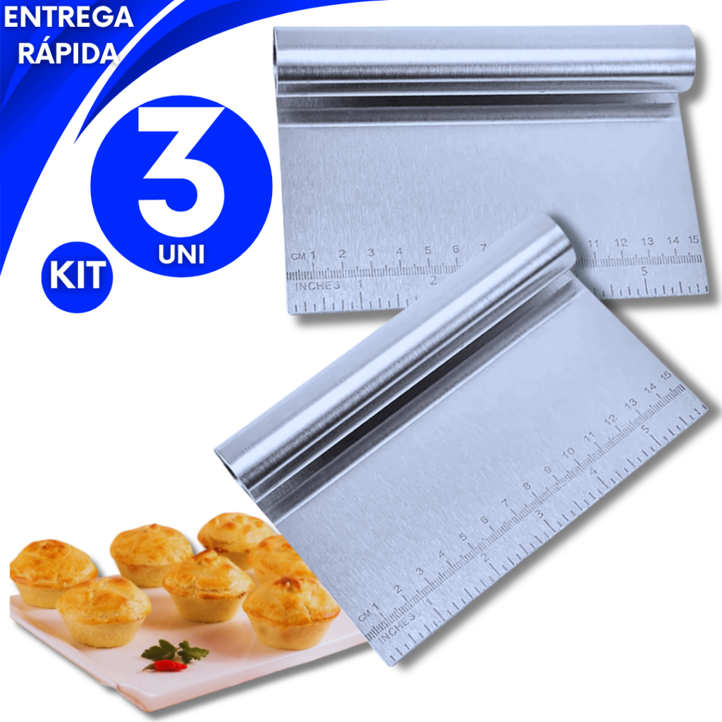 Kit Espátula Inox Cortador Bolo Pães Tortas Prática Raspador De Massa Cabo Tubular Profissional