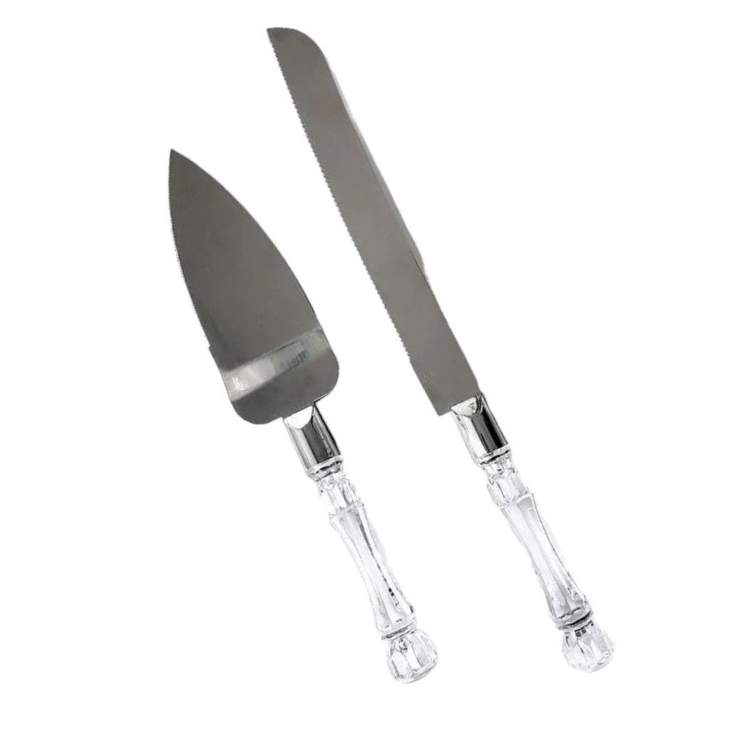 Kit Faca Espátula Bolo Pães Torta Aço Inox Cabo Acrílico Para Servir Cabo Acrílico