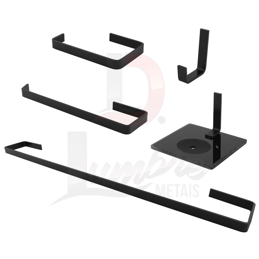 Kit Acessórios Banheiro Lavabo Stander Preto Fosco Matte Aluminio Inox Luxo 5 Peças Não Descasca