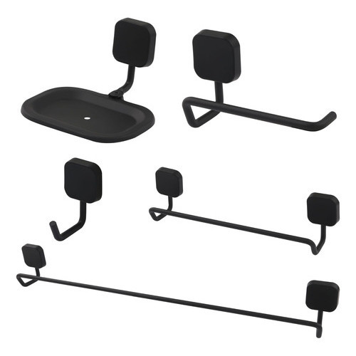 Kit de Acessórios para Banheiro com Ventosa Preto Fosco 5 Peças KIT-92684