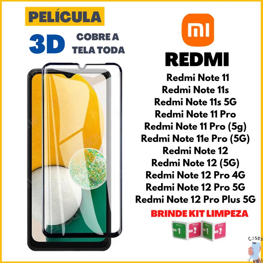 Película De Vidro 3D Xiaomi Redmi Note 7 8 8T 8 PRO 10 4G 10 5G 10S 11 11S 11S 5G 11 PRO PLUS 5G 11E PRO 12 5G 12 PRO 5G 12 PRO PLUS Note 12S 13 4G 13 5G 13 PRO PLUS