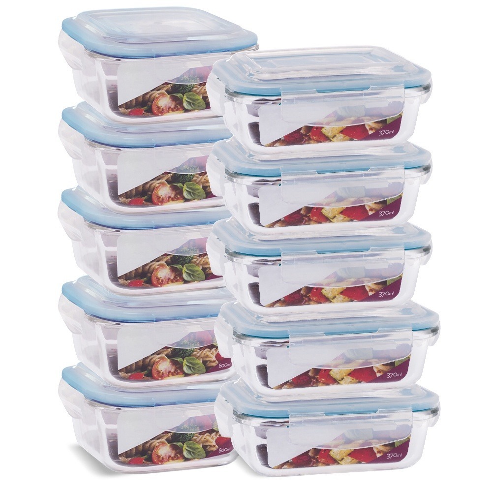 Kit 10 Potes Hermético Em Vidro Com Divisória Resistente Para Marmita 1040ml