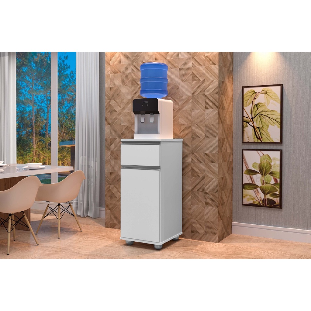 Suporte Para Bebedouro Com 1 Gaveta e Armário Com 1 Porta - Branco - Alaska - JA Móveis J&A Móveis