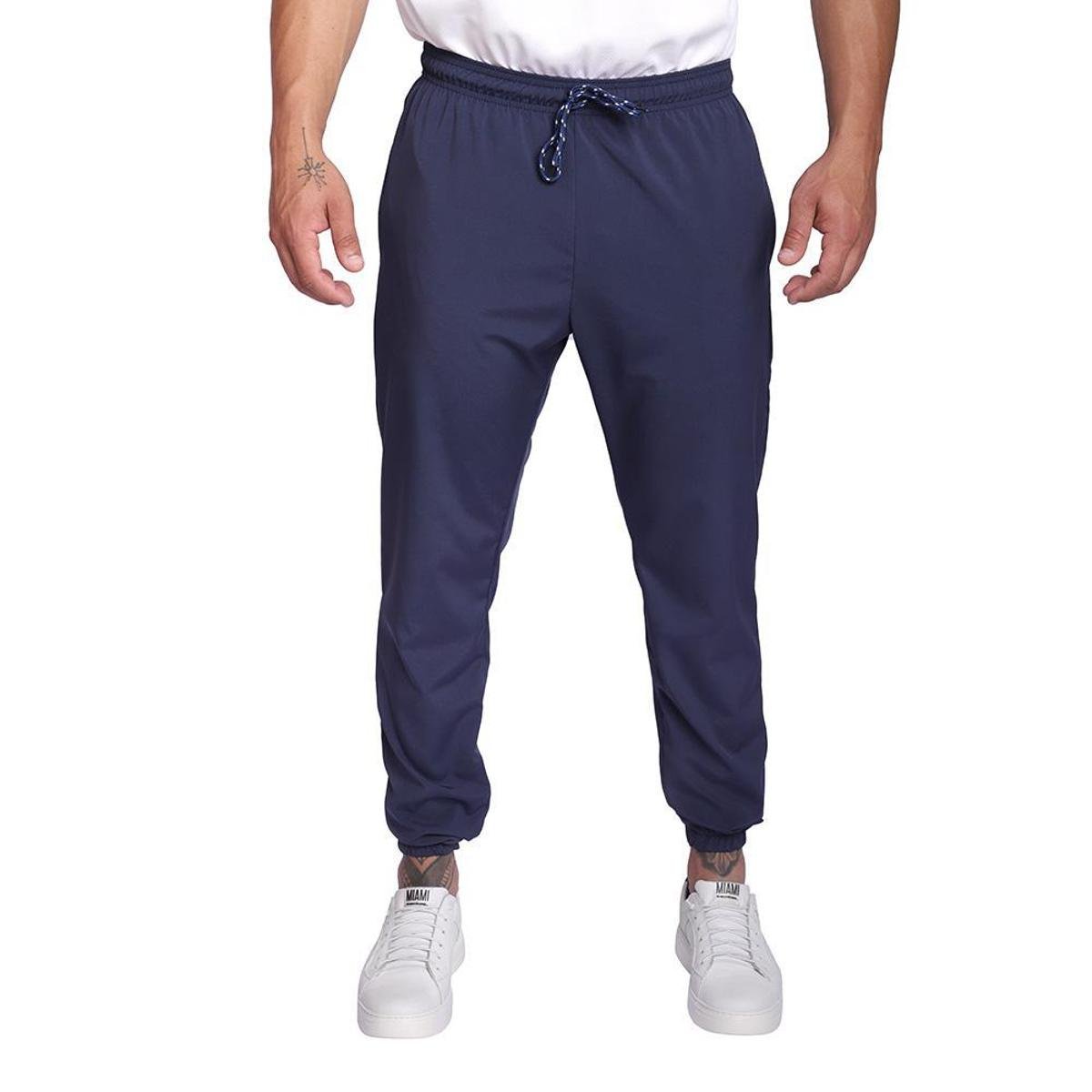 Calça Masculina Jogger Treino Academia Casual Esportiva Tactel Treino 3 Bolsos Azul Marinho