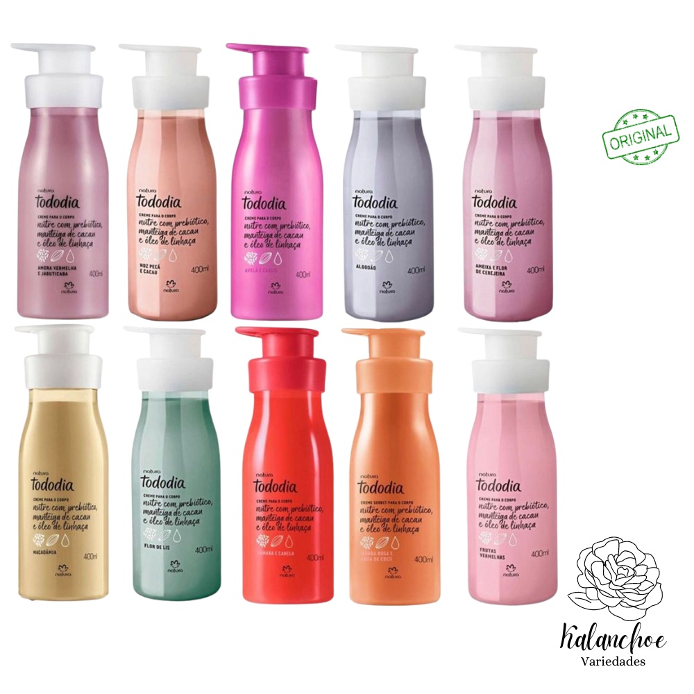 Creme Hidratante Refil Regular Natura Tododia Corporal 400Ml Várias Fragrâncias Desodorante Corpo Todo Dia Original Promoção Estoque para envio Imediato Algodão Macadâmia Cereja Avelã Ameixa Flor Baunilha Amora Vermelha Jabuticaba Tâmara Canela Acerola