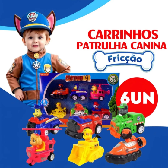 Kit 6 Carrinhos Patrulha Canina Brinquedo Fricção