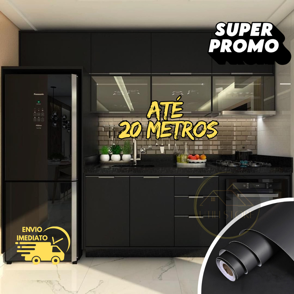Adesivo Preto Brilho/Fosco Para Móveis Geladeira Fogão Decoração 1 Metro Largura x 5 Metros Comprimento