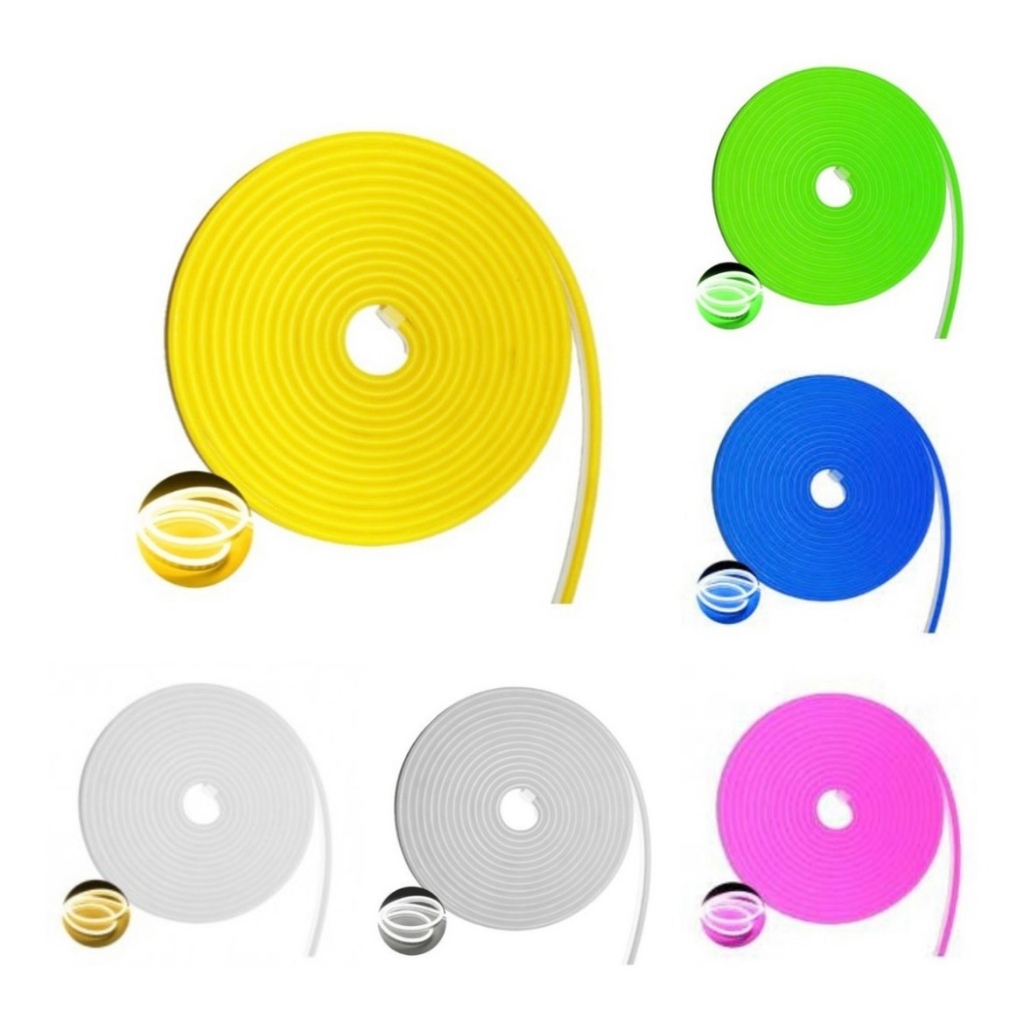 Fita Led Neon 2835 Rolo 5m Flexível 12v Alto Brilho Branco frio Rosa Roxo Azul Amarelo Branco Quente Vermelho Laranja Verde Azul Ice Blue Pink + Fonte Plug 3A