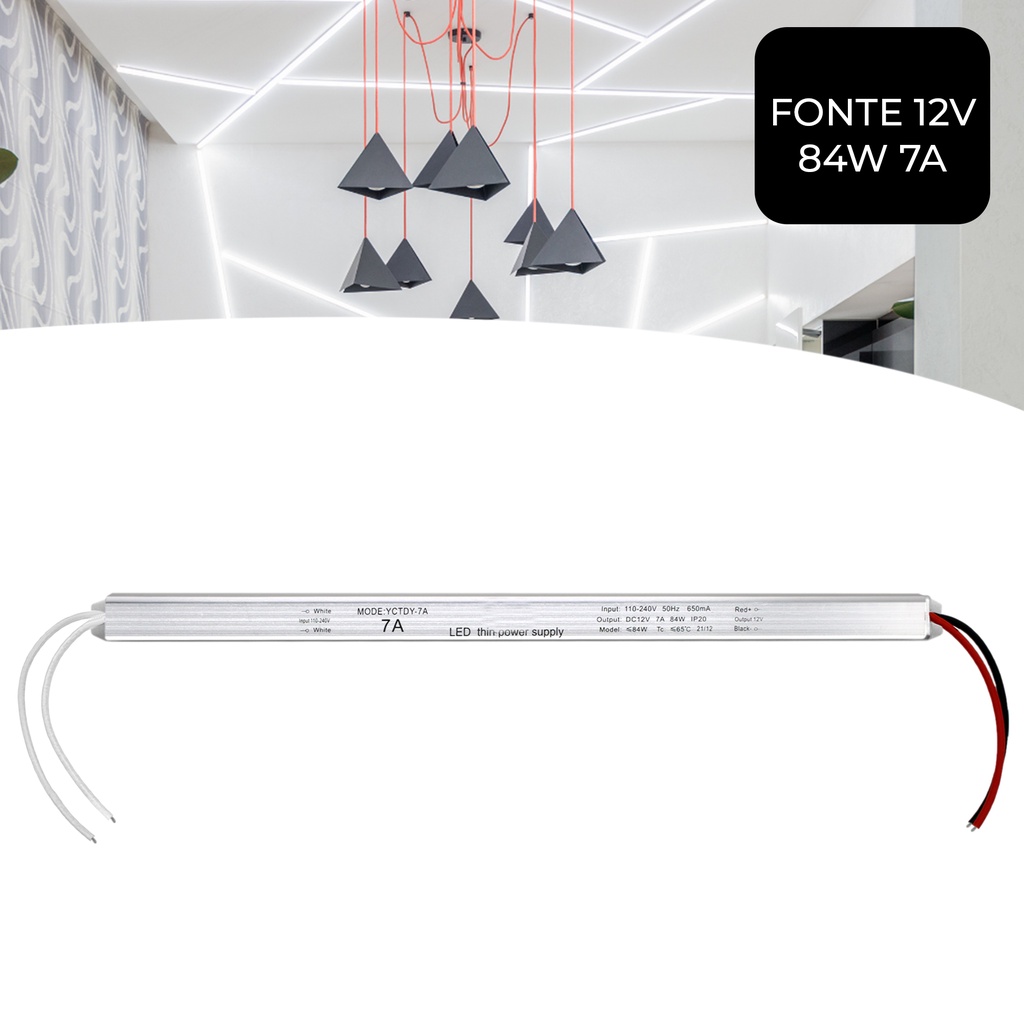Fonte Driver 12v 7a 84w Modelo Slim Para Perfil Fita De Led