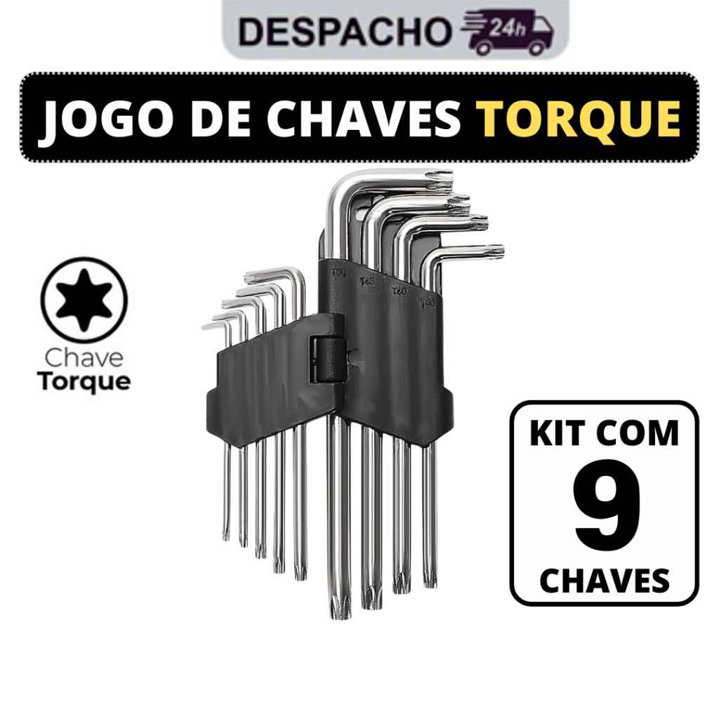 Jogo Chave Torque Kit com 9 Peças Torx Curta T10 até T50
