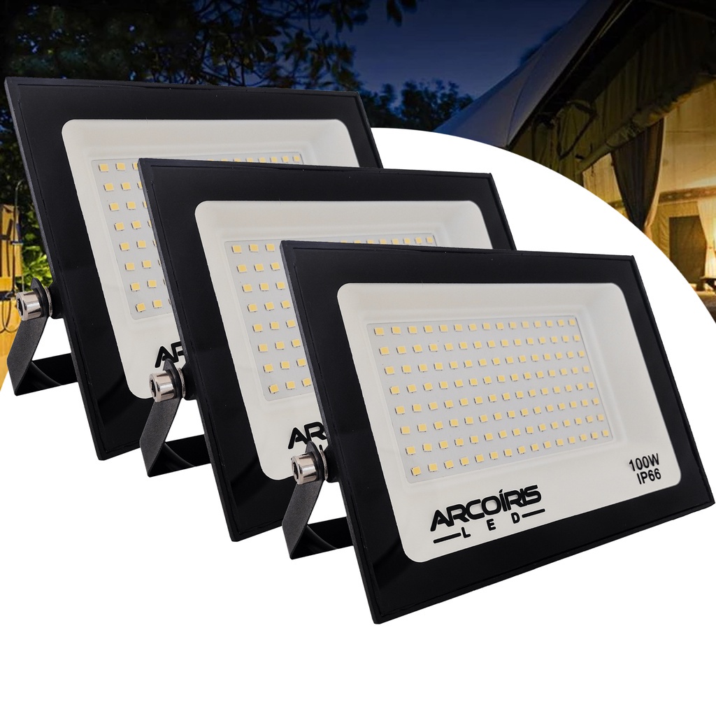 Kit 3 Refletor Led 100w Holofote Bivolt Prova Dágua Frio