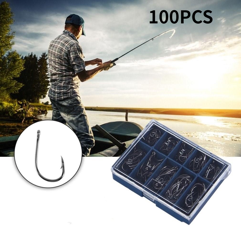100 Pçs / Caixa Alta Qualidade De Aço Inoxidável Ganchos De Peixe Carpa Isca De Pesca Afiado Set 10 Tamanhos