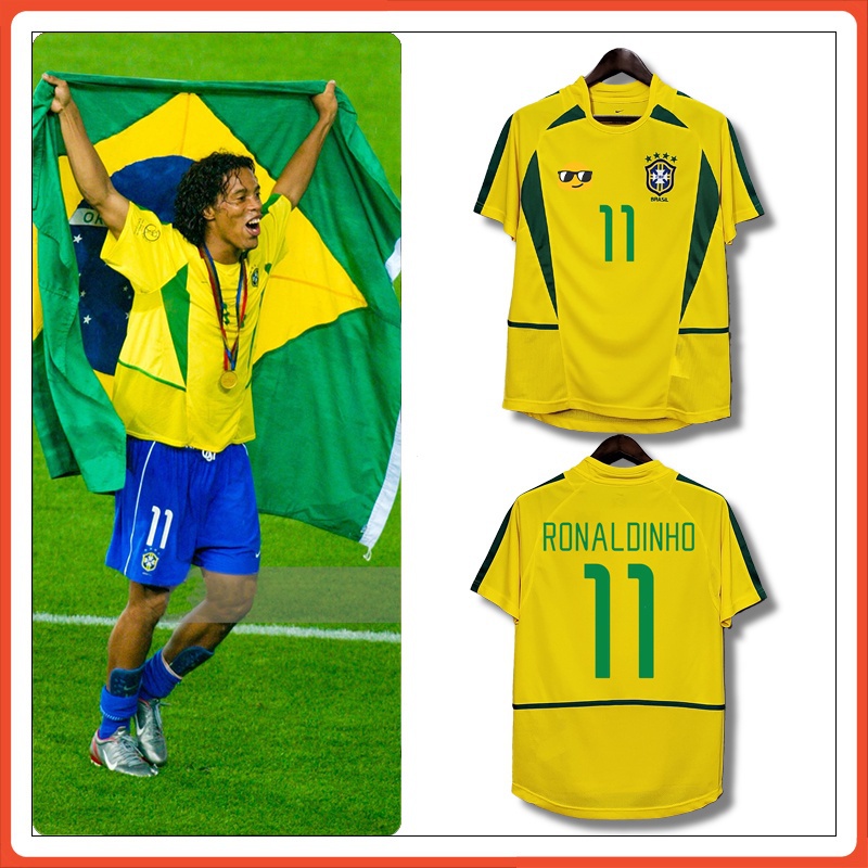 02 Brasil Jersey No . Copa Do Mundo De 2002 Home 9 Ronaldo Por 111 Camisa De Manga Curta Retro Futebol