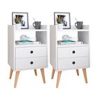 Kit 2 Mesas de Cabeceira Madri Retrô com Pés Palito 2 Gavetas Branco