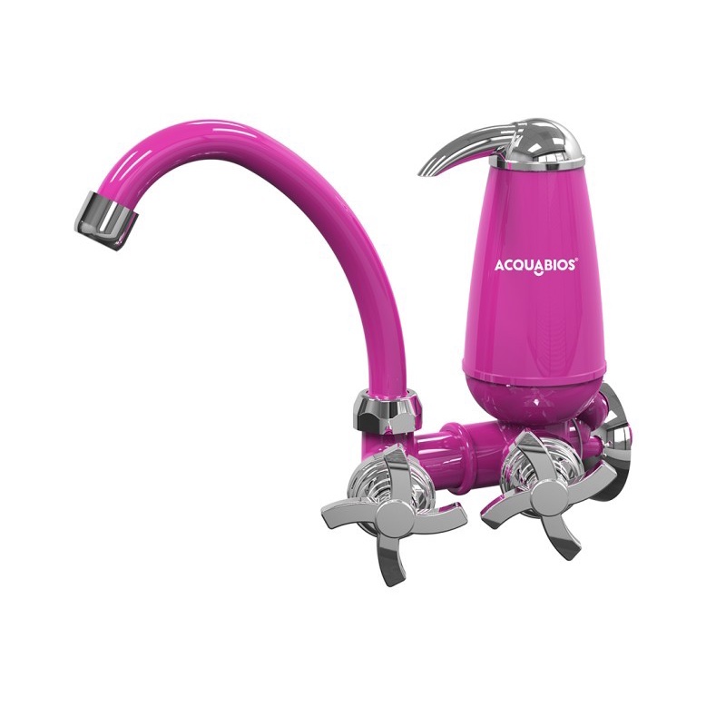 Torneira de Parede com Filtro De Água Purificador Bica Móvel de Cozinha Rosa Com Cromado Pink Quadriseta Acquabios