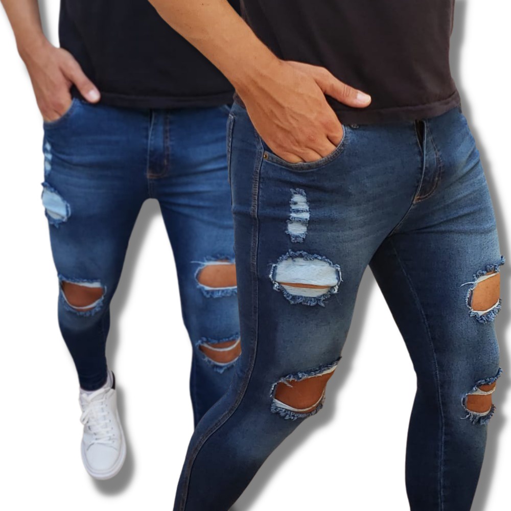 Calca Jeans Masculina Destroyed Rasgada Skinny Com Laycra Elastano Duas Cores Pronta Entrega.