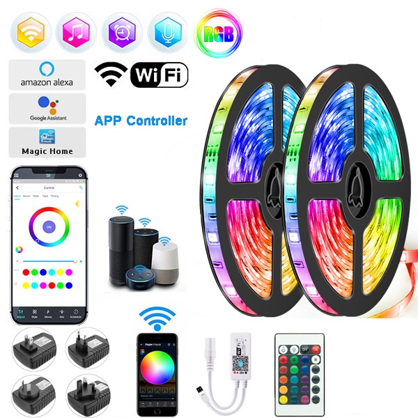 Fita Led Rgb Controle via Alexa Wifi Bluetooth 5050, 5M, 10M, 15M, 20M App + Controle Remoto + Fonte / Envio Imediato