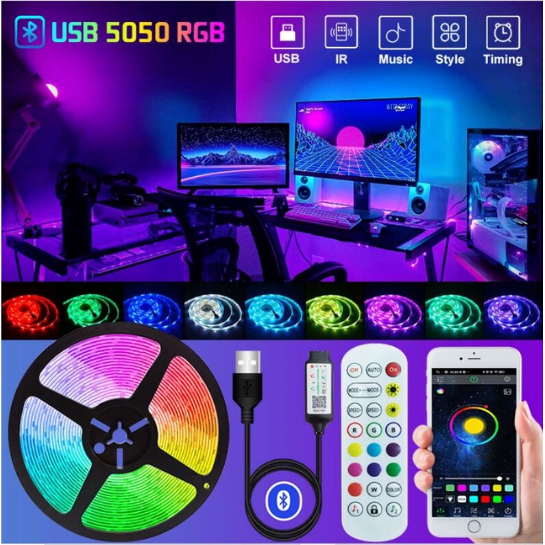 WIFI Alexa 5M-30M USB Bluetooth RGB 5050 5V Fita LED Flexível Para Decoração De Quartos Luz Traseira De TV Com Diodo
