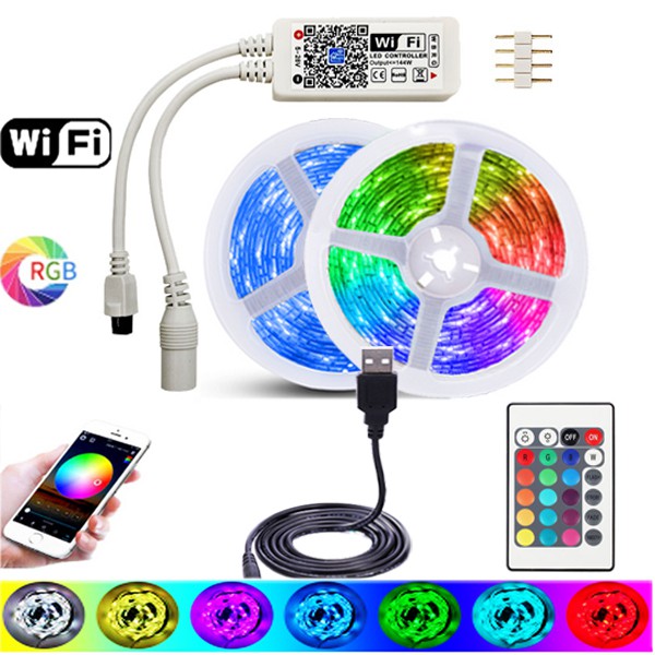 Fita LED RGB 5050 Controle WiFi Bluetooth IoT Fonte Flexível Lâmpada 5-24V Fita 10m, 7,5m, 5m IR